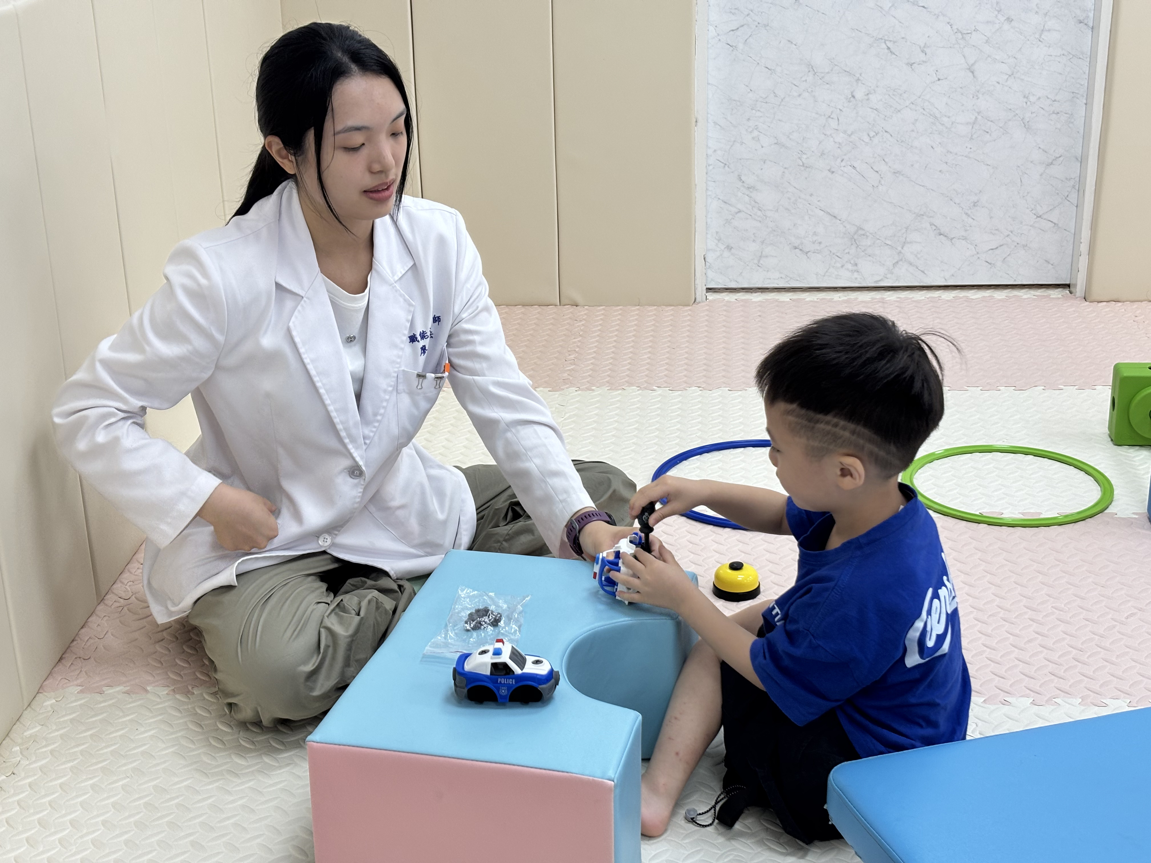 每次上課時,古亭分院的苡妘老師都會在活動中設計一些規則、指令,嘗試讓他認知並練習規則;並搭配動態課程,提升整體感覺統合的能力。